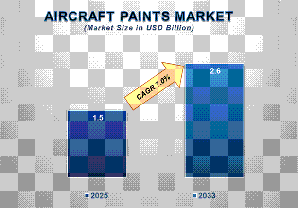 The global Aircraft Paint Market is witnessing steady expansion, driven by rising aircraft production, fleet modernization programs, and growing demand for enhanced performance and aesthetics in the aviation sector. Valued at USD 1.5 billion in 2025, the market is projected to reach USD 2.6 billion by 2033, growing at a CAGR of 7.0% during the forecast period.