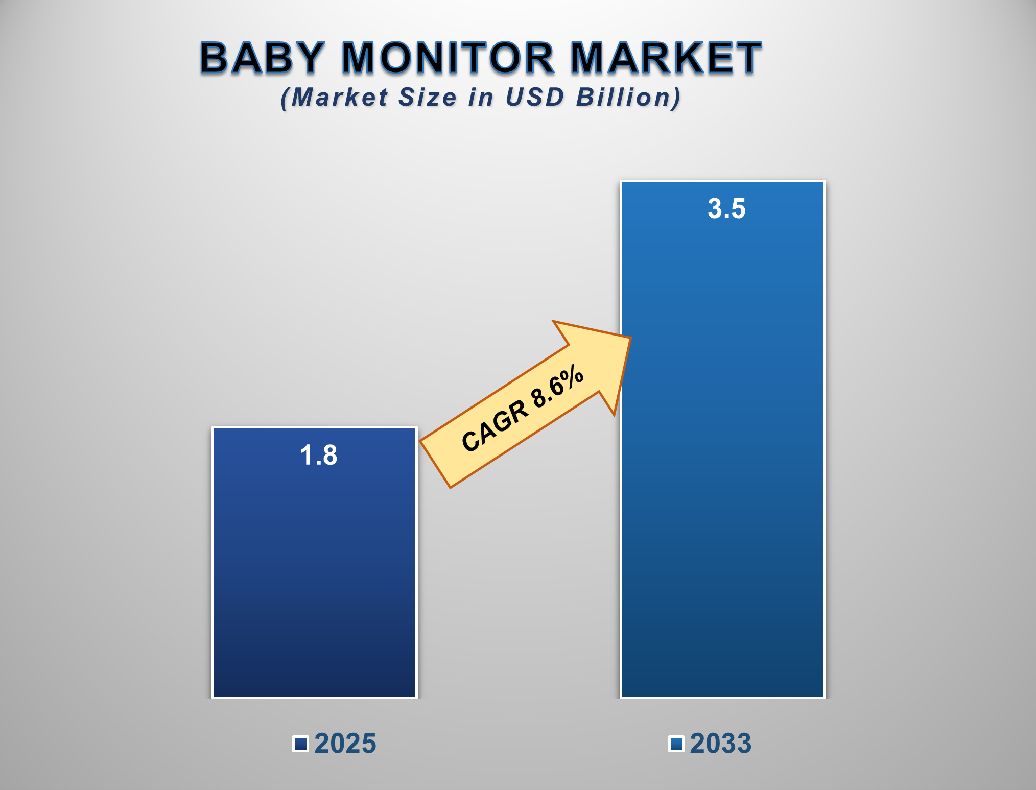 The Baby Monitor Market is poised for a period of robust and innovative growth from 2025 to 2033, fueled by rising parental concerns for infant safety, increasing disposable incomes, and the rapid integration of smart home technologies and AI into childcare solutions. The market is projected to be valued at approximately USD 1.8 billion in 2025 and is forecasted to reach nearly USD 3.5 billion by 2033, exhibiting a compound annual growth rate (CAGR) of 8.6% during this period.