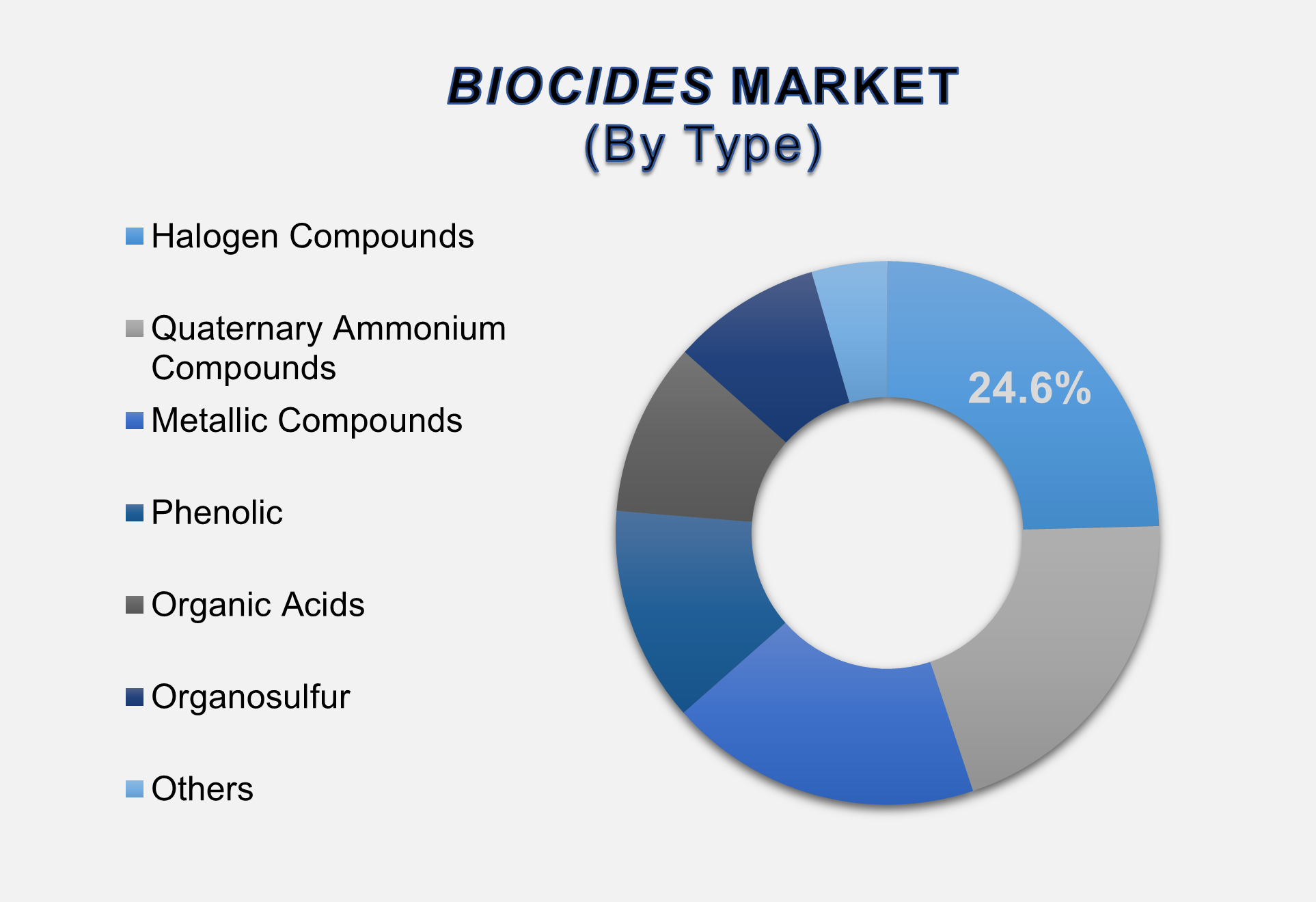 Biocides Market Size And Forecast (2025 - 2033), Global And Regional Growth, Trend, Share And Industry Analysis Report Coverage: By Type (Halogen Compounds, Quaternary Ammonium Compounds, Metallic Compounds, Phenolic, Organic Acids, Organosulfur, Others), By Application (Water Treatment, Food And Personal Care Products, Cleaning Products, Furniture And Furnishings, Clothing And Textiles, Leather And Suede, Paints And Coatings, Fuel Preservatives, Others) And Geography