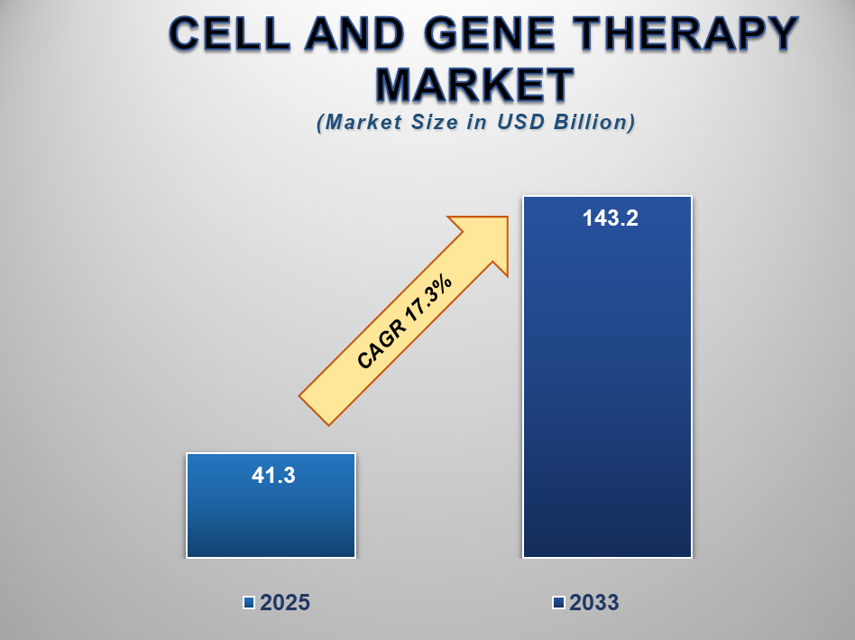 The Global Cell and Gene Therapy Market is witnessing rapid expansion, driven by breakthroughs in regenerative medicine, rising prevalence of chronic and genetic disorders, and increasing investments in advanced therapeutic research. Valued at USD 41.3 billion in 2025, the market is projected to reach USD 143.2 billion by 2033, growing at a remarkable CAGR of 17.3% during the forecast period.