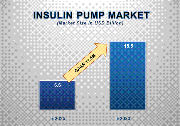 The global insulin pump market is expected to experience robust growth from 2025 to 2033, primarily driven by the rising global prevalence of diabetes. Estimated at USD 6.6 billion in 2025, the market is projected to reach USD 15.5 billion by 2033, registering a strong CAGR of 11.5% over the forecast period.