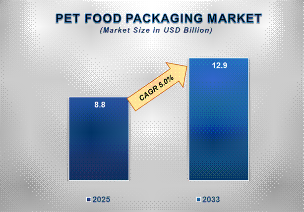 The global pet food packaging market is witnessing significant growth, fueled by rising pet ownership, increased spending on pet nutrition, and growing consumer preference for convenience and sustainability. Valued at USD 8.8 billion in 2025, the market is projected to reach USD 12.9 billion by 2033, growing at a CAGR of 5.0% during the forecast period.