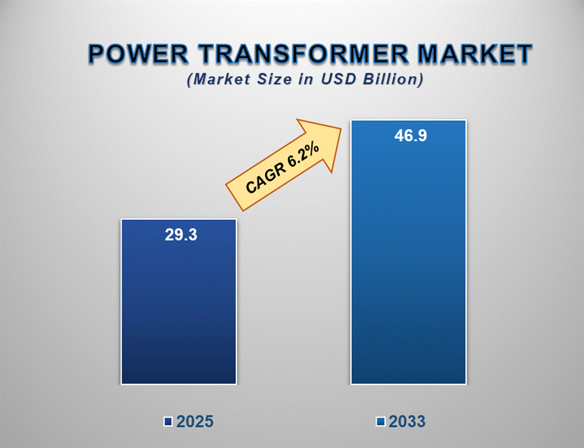 The global power transformer market size is poised for substantial growth from 2025 to 2033, driven by increasing electricity demand, modernization of grid infrastructure, and the integration of renewable energy sources. Valued at approximately USD 29.3 billion in 2025, the market is projected to reach USD 46.9 billion by 2033, registering a steady CAGR of 6.2% during the forecast period.