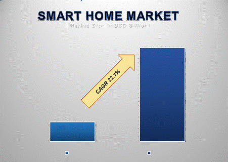 The Smart Home market growth is predicted to develop at a compound annual growth rate (CAGR) of 22.1% from 2025 to 2033, when the global smart home market forecast revenue is projected to reach USD 457.5 Billion in 2033, based on an average growth pattern. The global smart home market size is estimated to reach a value of USD 95.0 Billion in 2025.