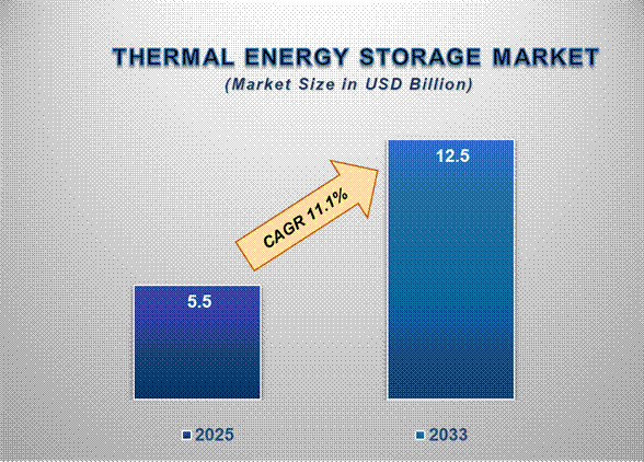 The global thermal energy storage systems market is poised for substantial growth between 2025 and 2033, propelled by the rising demand for energy efficiency, decarbonization targets, and renewable energy integration. Valued at approximately USD 5.5 billion in 2025, the market is expected to reach USD 12.5 billion by 2033, growing at a CAGR of 11.1% during the forecast period.